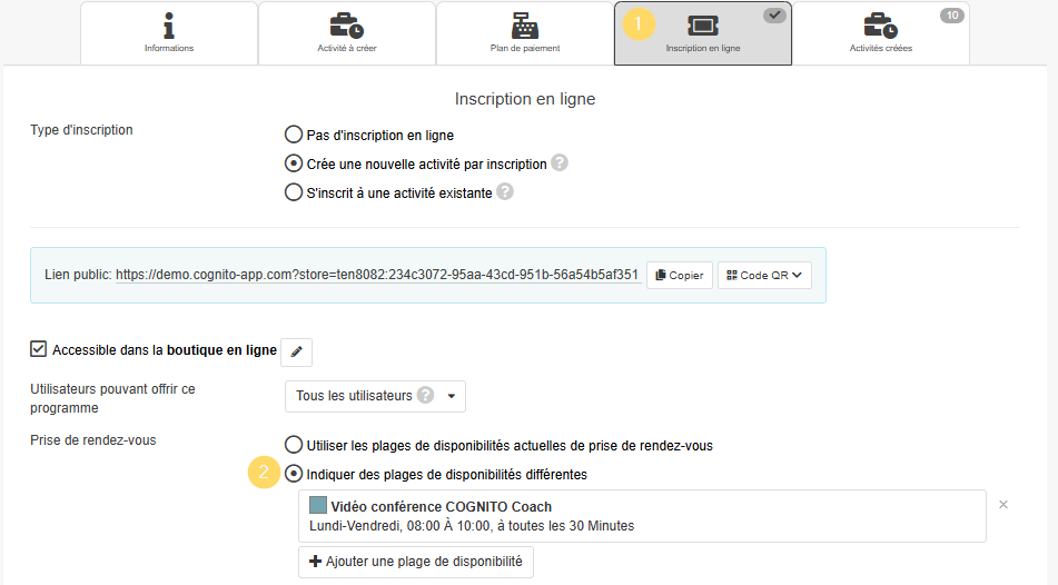 Comment ça marche : Chaque lien de prise de rendez-vous, de programme ou de formulaire généré par Cognito Coach produit désormais un QR Code unique.